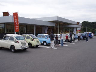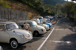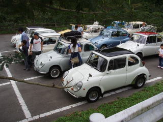 近くの駐車場で 皆さんのスバル360を見ながら 試乗したり、おしゃべりをして 楽しい時間が過ぎていきます♪ |