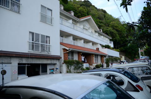 土肥温泉のペンションに到着 |