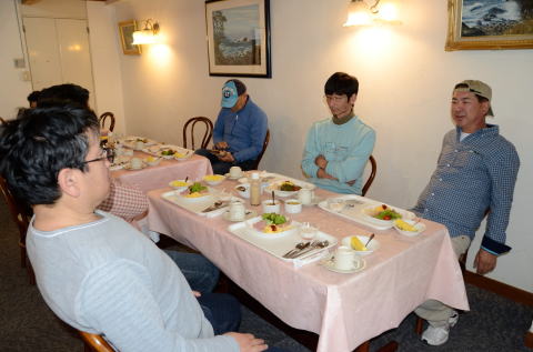 翌朝です 盛り上がり過ぎて お疲れ気味のおじさんたち |