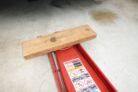 ジャッキの皿の上に 板などを置いているため 通常のジャッキアップより 不安定になるので 慎重に作業します |