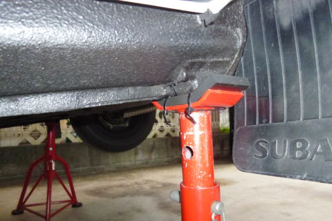 リヤは、エンジンメンバに ジャッキをかけます |