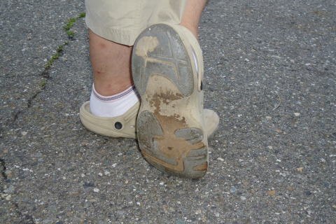 ペッパーさんのサンダルが ガソリンで溶けてしまいました! |