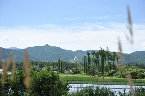 電波天文台の 巨大なレーダーが見えます |