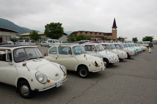 スバル360が並びます♪ 手前は、Dr.ペッパーさんの スバルです いろいろ大変な中 参加いただきました |