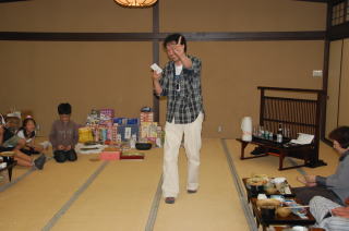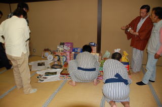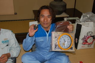 その後、宿へ移動しました 雨が降ってきたので、宿の写真を 撮るのを忘れてしまいました m(__)m ビンゴ大会用に景品がずらりと・・・ |