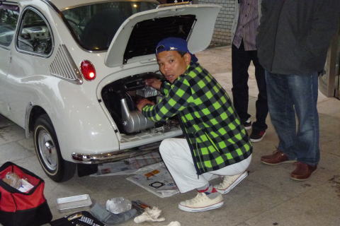 皆さんの後を追って 宿に到着すると・・・ 夢太郎さんがリヤフードを 開けていました |