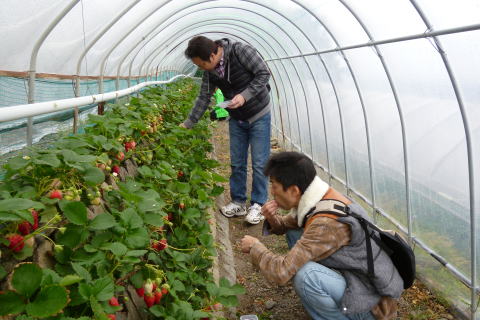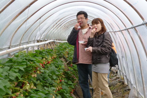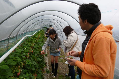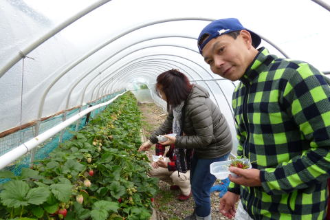 さて、翌日は楽しみにしていた いちご狩りです♪ |