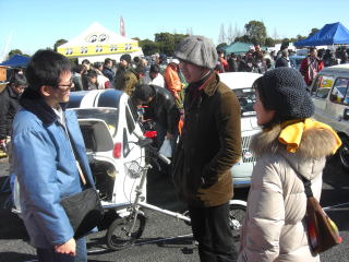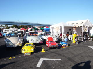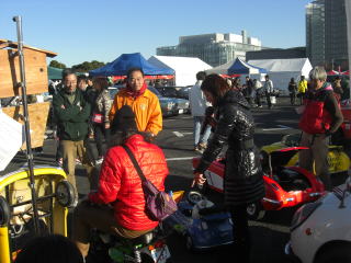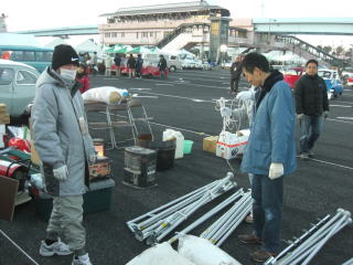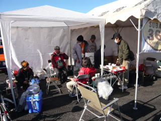 テントも組みあがり 車を並べていきます |