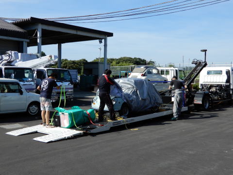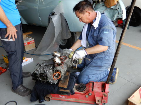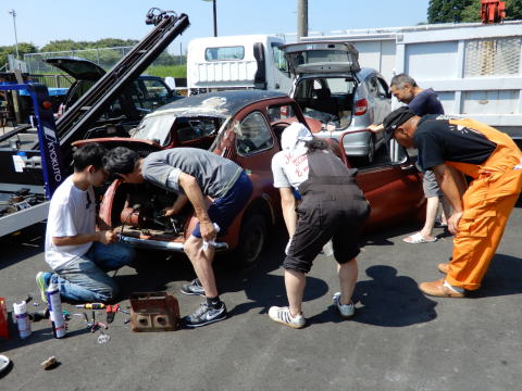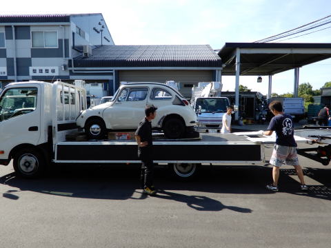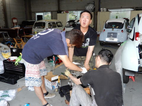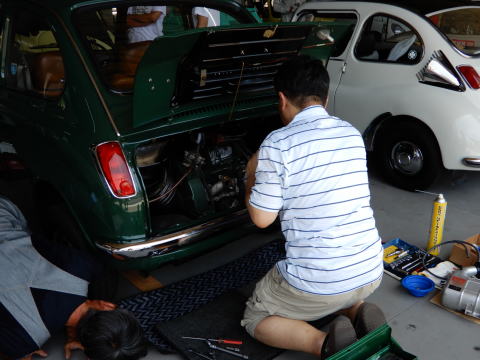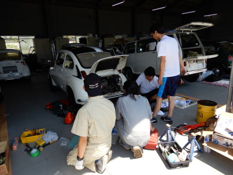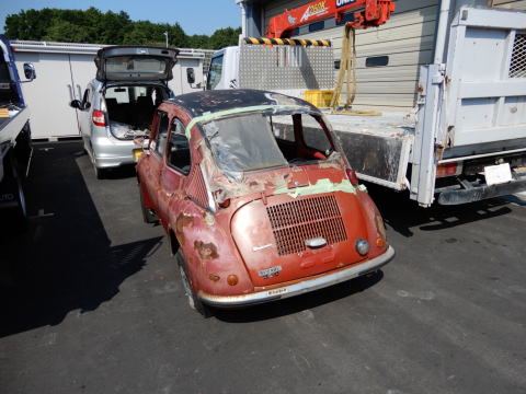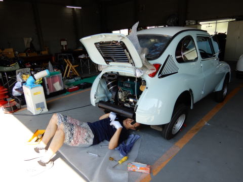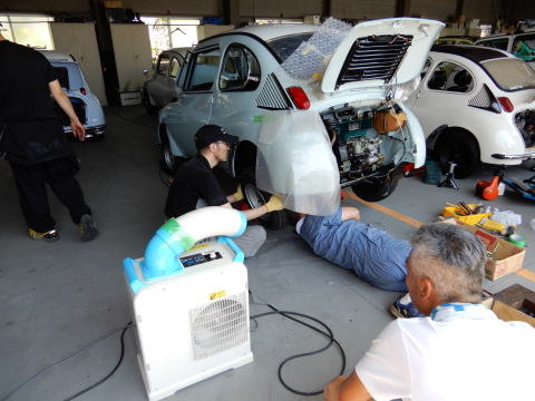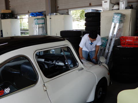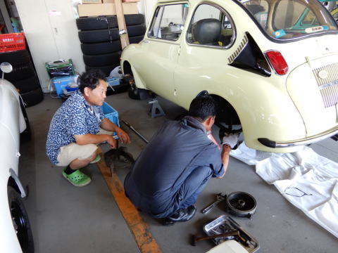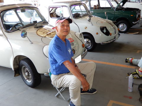 あまみつさんは 助っ人を引き連れての参加です (潜っているのは助っ人の方) ピカピカのスバル360で 触るのが怖いくらいです! |