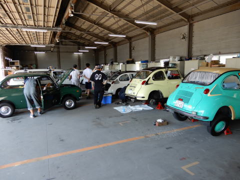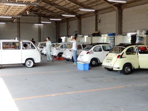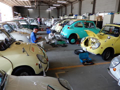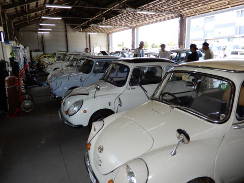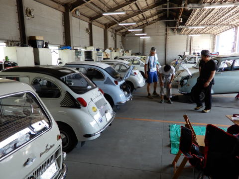 昨年に引き続き クラブ仲間の秘密基地で 集合するとのことでお邪魔しました♪ 8時ころ到着すると 数台のスバル360がいました |