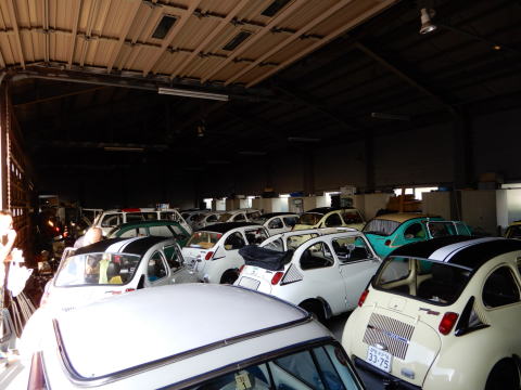 何台入っているのかわかりませんが ぎっしりとスバル360で 埋め尽くされています |
