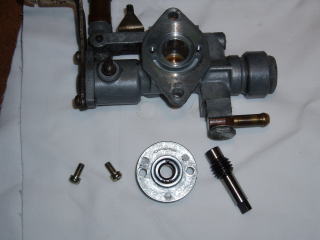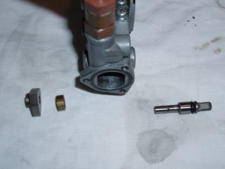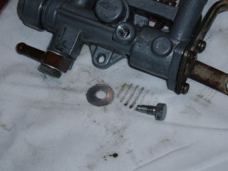 とりあえず、プランジャーガイドから 外します こちらは、R2のものです ワッシャーがロックワッシャーを 兼ねています また、R2でもスバル360と同形状の ものもありますので 年式の違いがあるのか 改造されたポンプなのかは不明です |