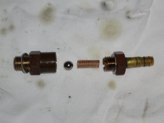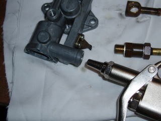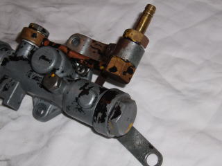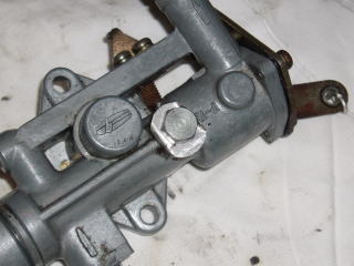 初期型のストッパーは ポンプの外側にあり 直接レバーの動きを規制しています |