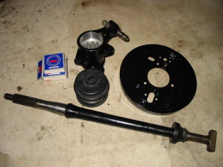 化粧直しされたハブ、バックプレートと 新しいベアリングです ブーツの他、オイルシールも 用意しました |