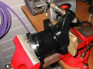 新しいベアリングは 古いベアリング等を利用して バイスを使って圧入していきます まっすぐ入るように、様子を見ながら 入れていきます |