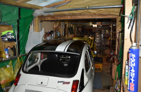 ガレージに収まる白いSS |