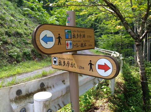 奥多摩駅まで 1.2qの所まで来ました 奥多摩の遊歩道は 案内がしっかりしていて 迷わずに歩けますね |