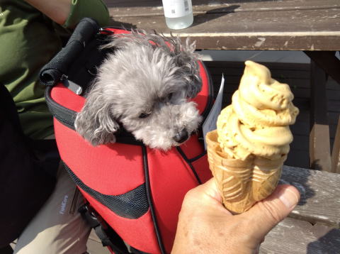 駅前で ソフトクリームを食べて クールダウンです |