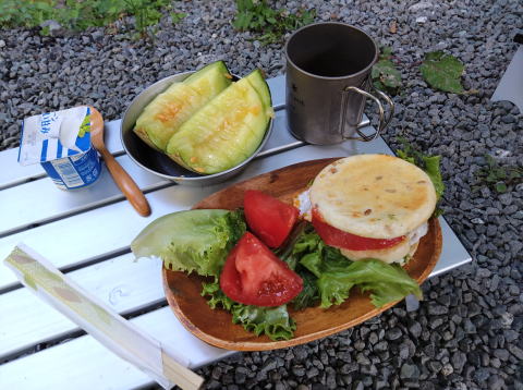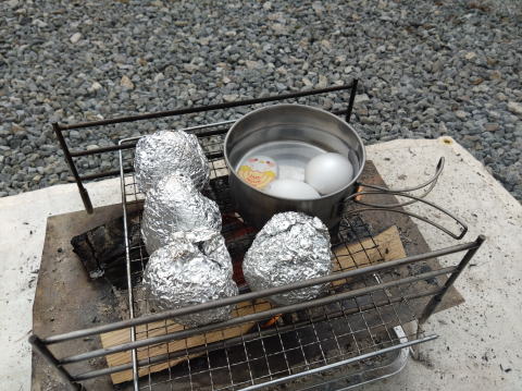 朝食は焼きおにぎり&ゆで卵 |