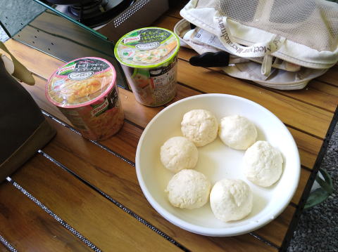 昼食は パンを作ってもらいました |