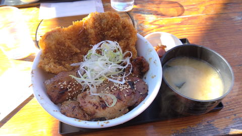 秩父名物W丼 豚みそ丼と、わらじかつ丼を 同時に楽しむことが出来ます 並でごはんを半分にしてもらいました |